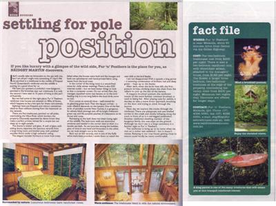 Contact: Fur ‘n’ Feathers, M.S. 1877, Malanda, Qld 4885; Ph (07) 4096 5380; Fax: (07) 4096 5380; e-mail: stay@rainforesttreehouses.com.au; web: www.rainforesttreehouses.com.au