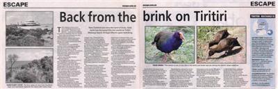 New Zealand was once the land of birds. Dedicated hard work has recreated this lost world on Tiritiri Matangi Island. Bridget Martin goes twitching.