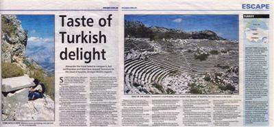 Then, suddenly, we find ourselves at the theatre. In contrast to the other ruins it is in an excellent state of repair. Semicircles of tiered seats dip down below us. Beyond, the surrounding mountain peaks rise dramatically, Mt Gulluck reaching 1265m; understandably this has a reputation as the most scenically positioned of all ancient theatres.